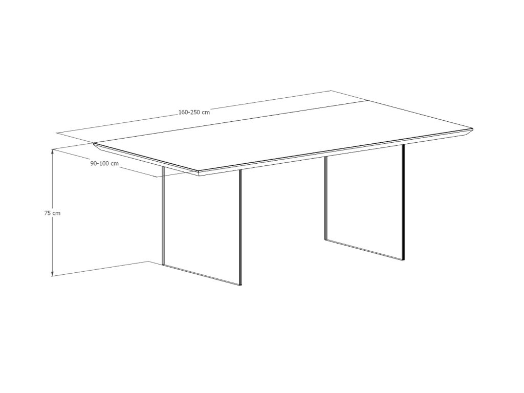 Vlastní desku nesou dvě pevné skleněné tabule, které jsou vyrobeny z tvrzeného zdvojeného skla s bezpečnostní folií a krystalickou úpravou. Skleněné podnože jsou do desky zafrézované se skrytým kotvením. Pozice skleněných desek může být rovnoběžně, nebo zešikma dle dispozic a potřeb pro zachování maximálního pohodlí při sezení.