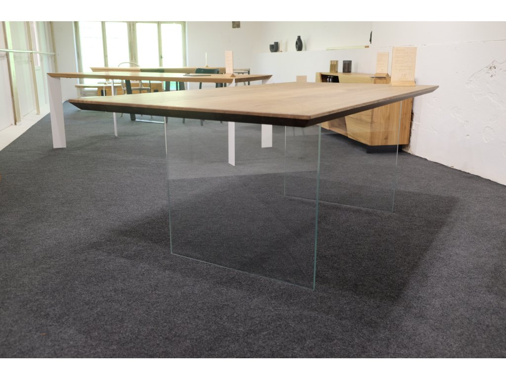 Základ konstrukce tohoto moderního dubového jídelního stolu tvoří bezpečnostní tvrzené zdvojené sklo, která nese masivní dubovou desku. Je vhodný jako jídelní stůl do moderních prostor, skvěle poslouží i jako dominanta kanceláře. V případě zájmu o jiný než nabízený rozměr nebo jinou úpravu nás prosím kontaktujte.