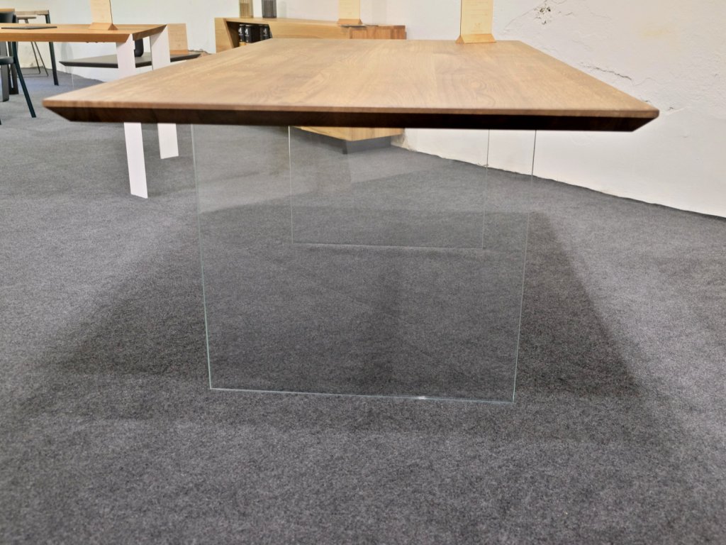 Vlastní desku nesou dvě pevné skleněné tabule, které jsou vyrobeny z tvrzeného zdvojeného skla s bezpečnostní folií a krystalickou úpravou. Skleněné podnože jsou do desky zafrézované se skrytým kotvením. Pozice skleněných desek může být rovnoběžně, nebo zešikma dle dispozic a potřeb pro zachování maximálního pohodlí při sezení.
