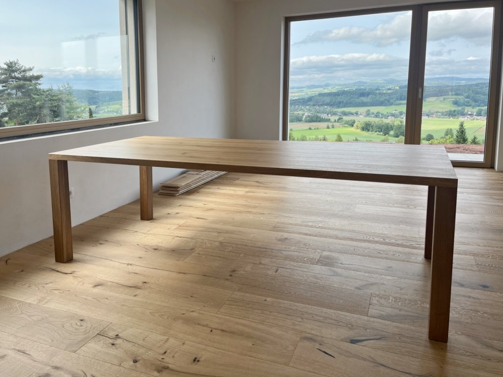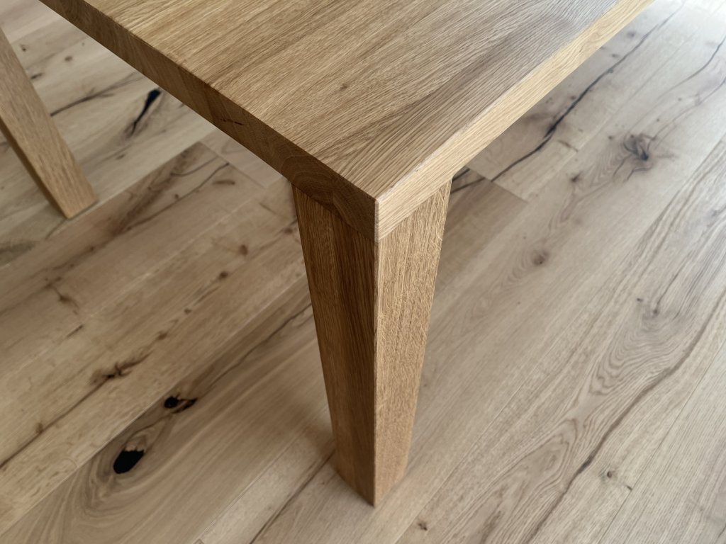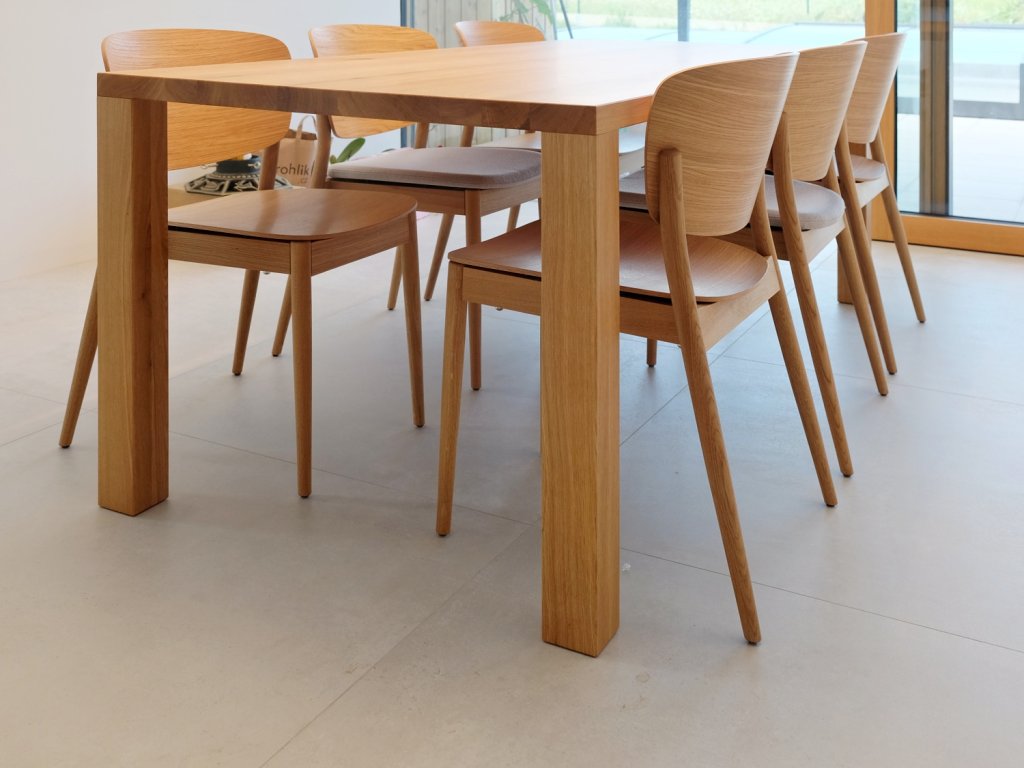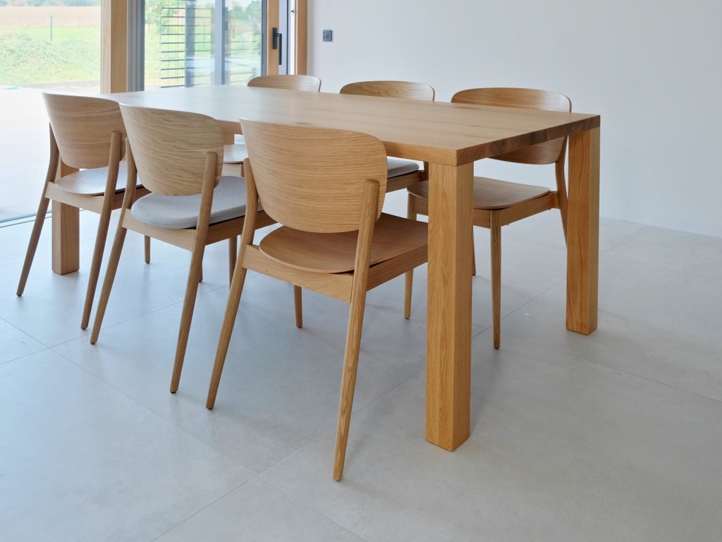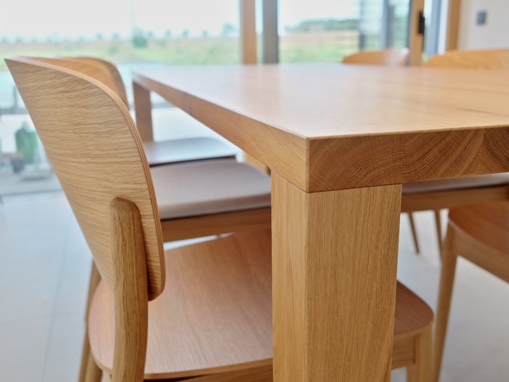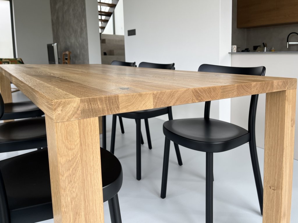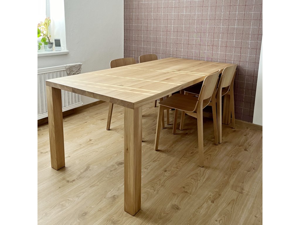 Celodřevěný stůl, který vás nepřestane bavit. Minimalistické linie doplňují nadčasové čtvercové nohy v rozích. S deskou se spojují tak precizně, že stůl působí jako jeden kus dřeva.