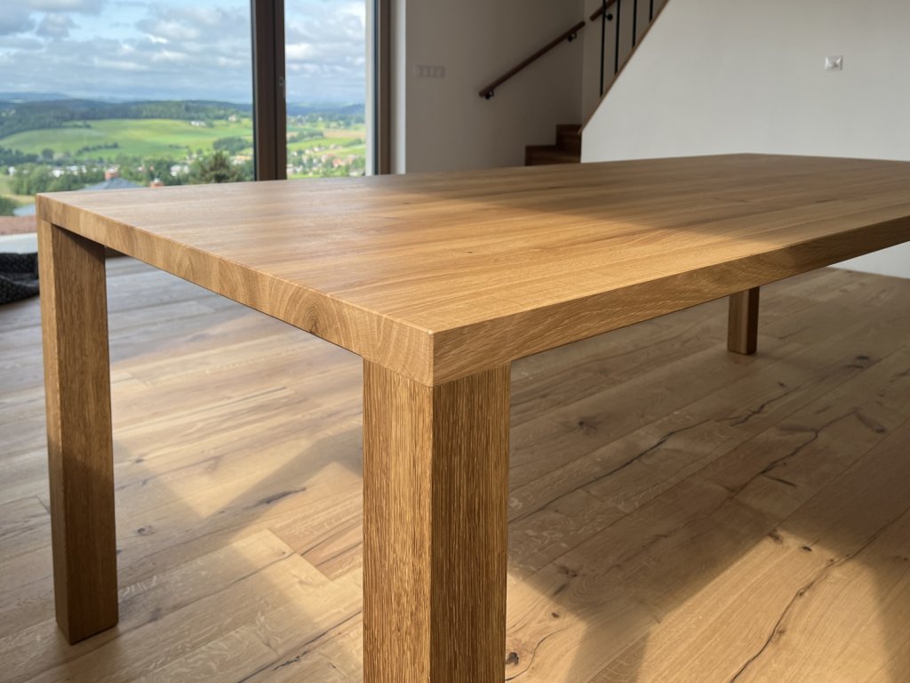 Desku stolu vyrábíme ze 40 mm silného masivního dubového/jasanového dřeva. Dub i jasan jsou velmi odolné dřeviny s nenahraditelnou přirozenou strukturou a je tím nejlepším, co můžete doma mít. Při správném zacházení vám naše masivní deska vydrží celý život. Pro zvýraznění struktury dřeva doporučujeme zvolit kartáčovanou úpravu povrchu, která desce dodá na dotek velmi příjemný "plastický" povrch. Desky jsou natřeny dvěma vrstvami tvrdého voskového oleje OSMO, který dřevo výborně chrání proti běžnému poškození a nechává dřevo přirozeně dýchat.