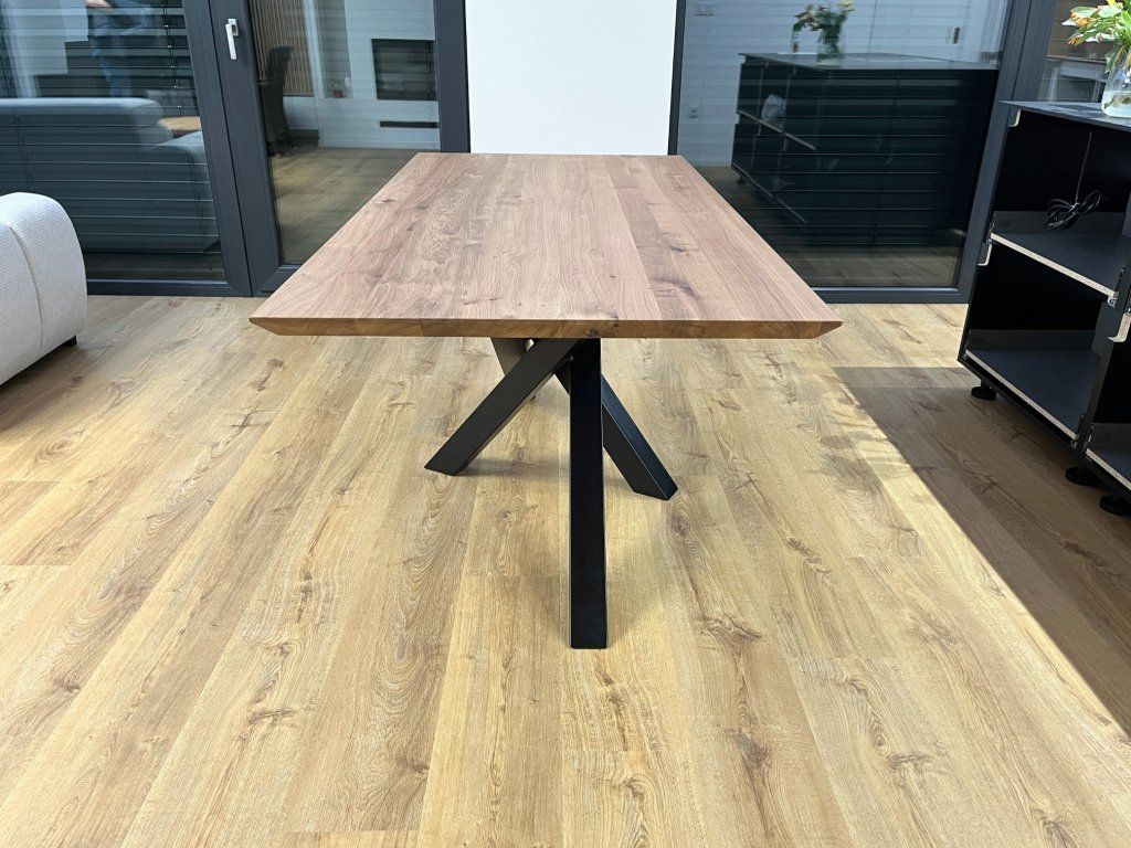 Desku stolu vyrábíme ze 40 mm silného masivního dubového/jasanového dřeva. Dub i jasan jsou velmi odolné dřeviny s nenahraditelnou přirozenou strukturou a je tím nejlepším, co můžete doma mít. Při správném zacházení vám naše masivní deska vydrží celý život. Pro zvýraznění struktury dřeva doporučujeme zvolit kartáčovanou úpravu povrchu, která desce dodá na dotek velmi příjemný "plastický" povrch. Desky jsou natřeny dvěma vrstvami tvrdého voskového oleje OSMO, který dřevo výborně chrání proti běžnému poškození a nechává dřevo přirozeně dýchat.