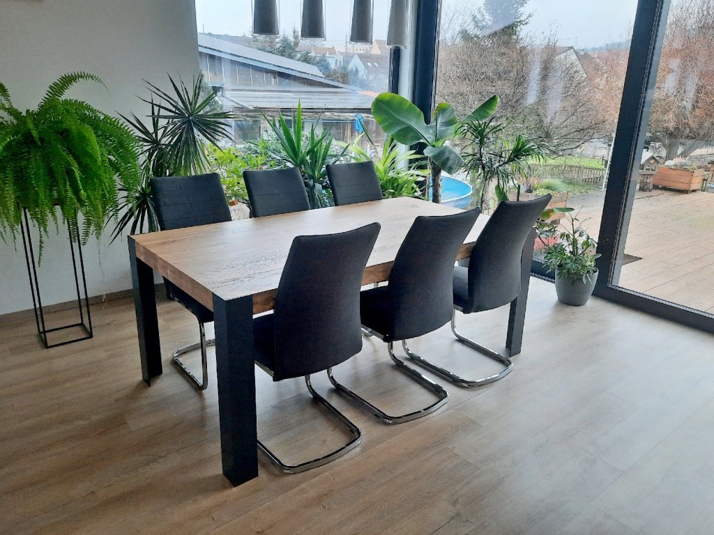 Orlí majestátnost, lokální masiv a designová čistota. Ocelové nohy zapuštěné do dřeva mají unikátní tvar do L, který stolu propůjčuje originální industriální vzhled.