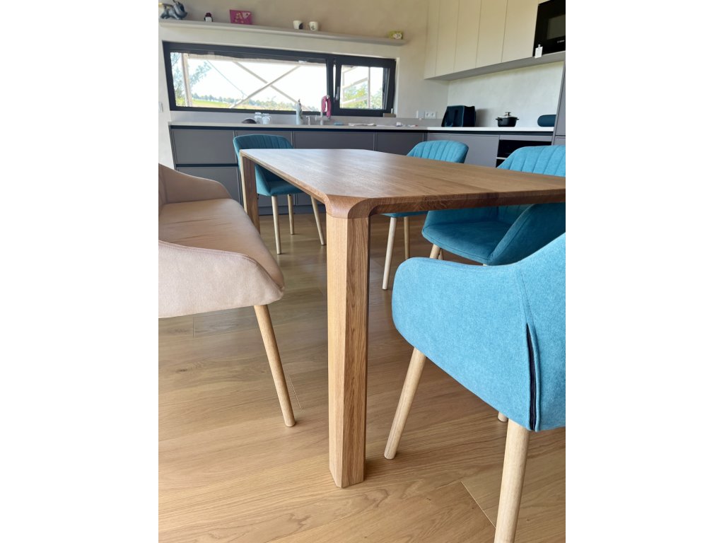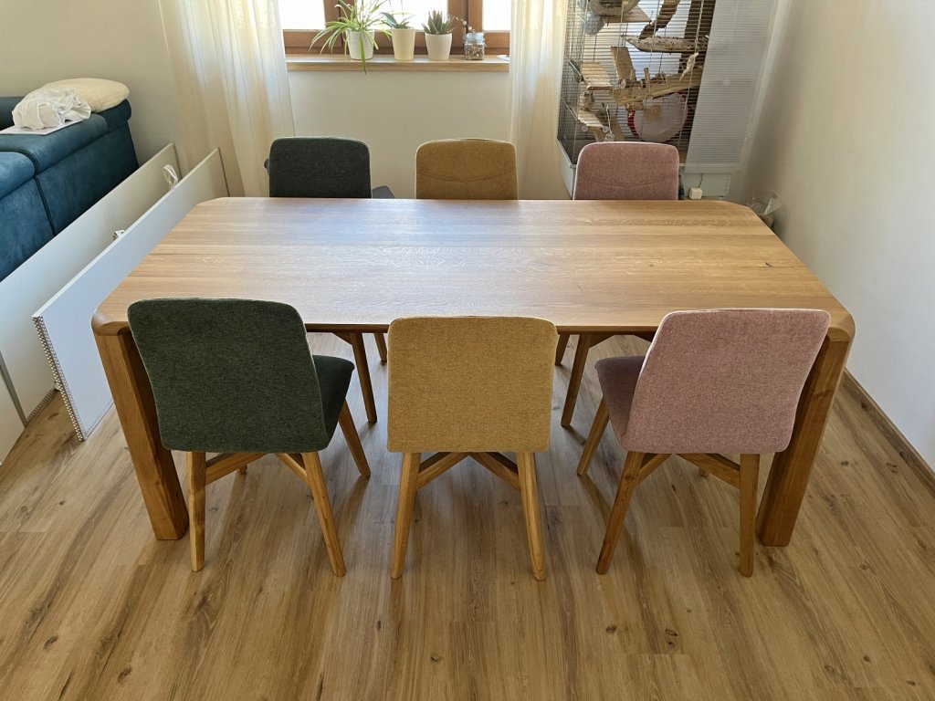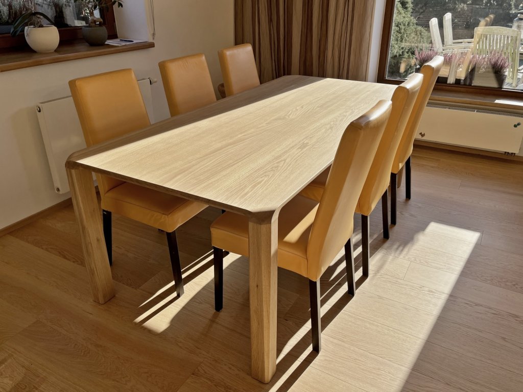 Desku stolu vyrábíme ze 40 mm silného masivního dubového/jasanového dřeva. Dub i jasan jsou velmi odolné dřeviny s nenahraditelnou přirozenou strukturou a je tím nejlepším, co můžete doma mít. Při správném zacházení vám naše masivní deska vydrží celý život. Pro zvýraznění struktury dřeva doporučujeme zvolit kartáčovanou úpravu povrchu, která desce dodá na dotek velmi příjemný "plastický" povrch. Desky jsou natřeny dvěma vrstvami tvrdého voskového oleje OSMO, který dřevo výborně chrání proti běžnému poškození a nechává dřevo přirozeně dýchat.