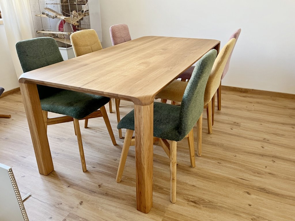 Pro výrobu interiérového nábytku používáme nejčastěji dubové a jasanové dřevo z místní produkce. Obě dřevíny se vyznačují nadstadnardní tvrdostí a nádhernou kresbou. Dubové dřevo je na pohled barevně kompaktnější, obsahuje často suky a je velmi oblíbené. Jasan má oproti dubu svělejší, sametovější ostín s tmavšími pruhy středového dřeva. Více si o popisu dřeva přečtete zde.