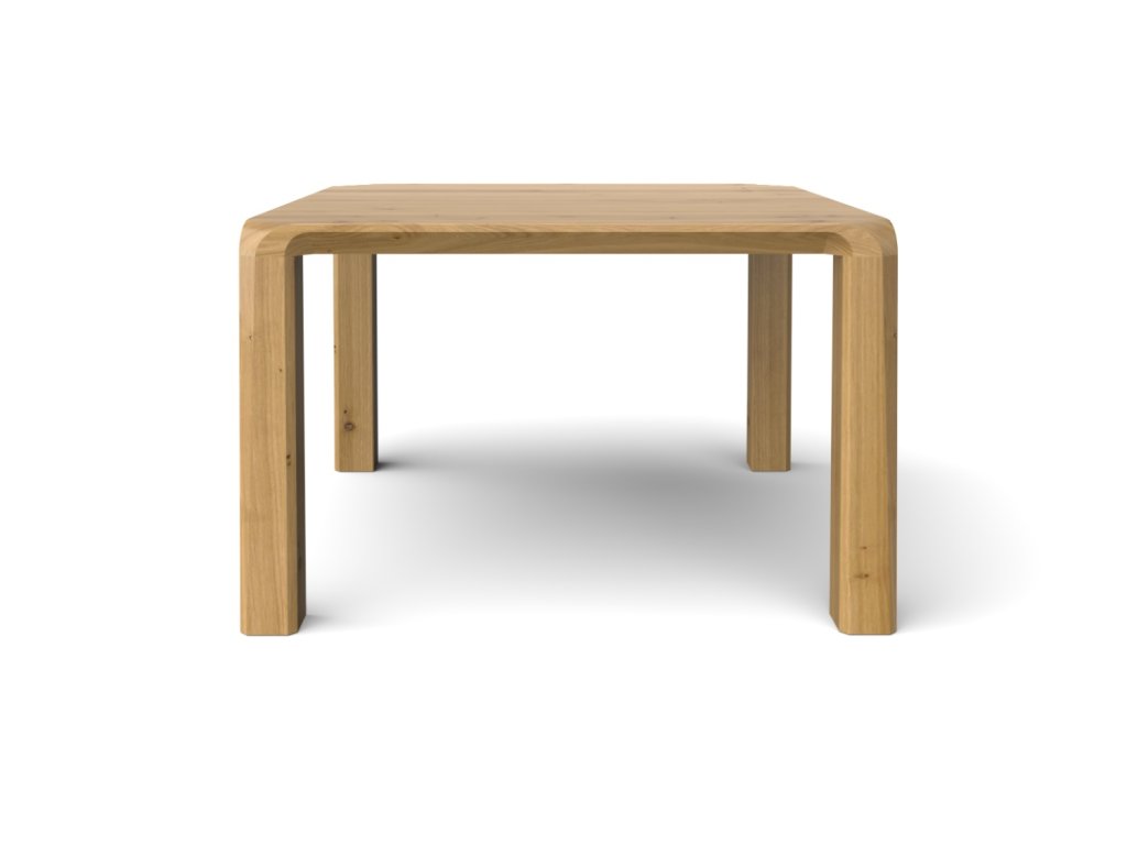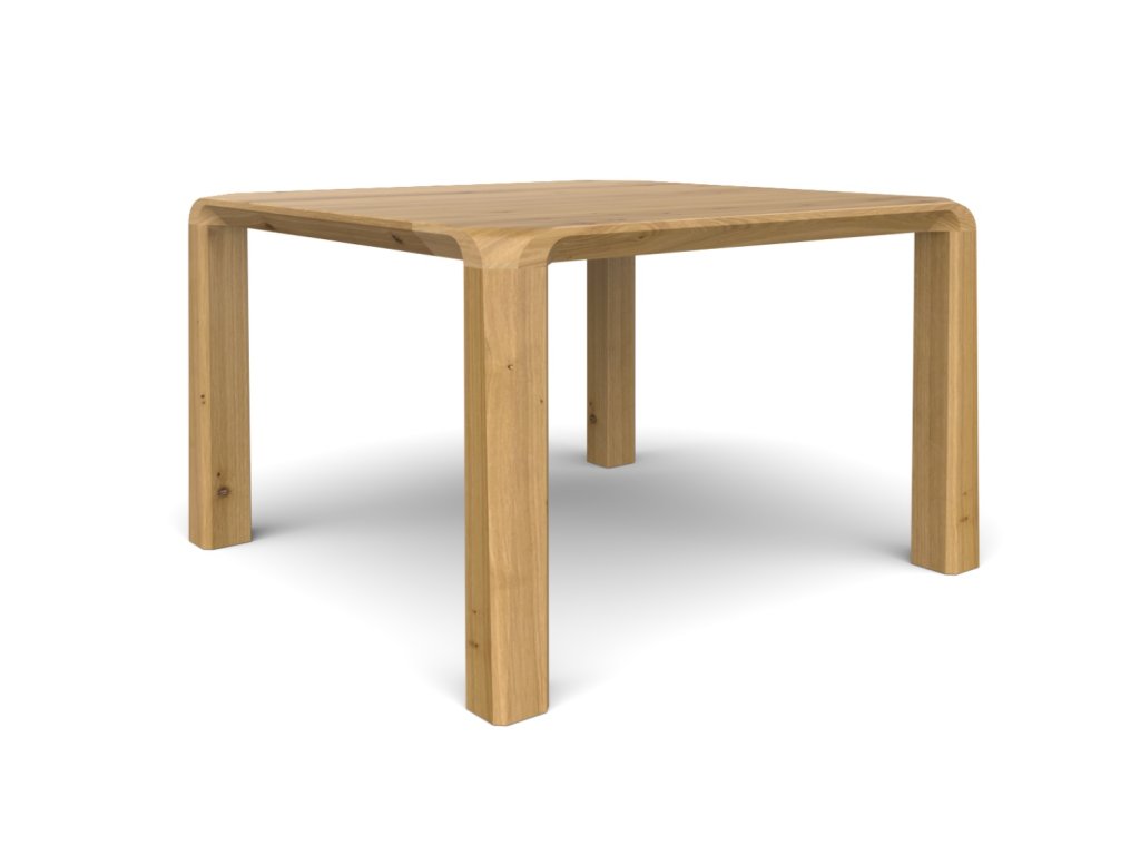 Minimalistickému stolku vévodí čtvercové nohy v rozích. S deskou se spojují tak precizně, že stůl působí jako jeden kus dřeva.
