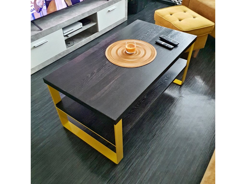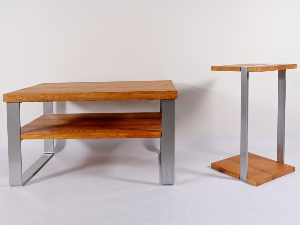 Kovová podnož je tvořena čtyřma nohama z ohýbané ocelové pásoviny 60x8mm. K dřevěné desce jsou nohy přišroubovány pomocí vrutů, stolek je dodáván rozložený s předvrtanými otvory a s přiloženými vruty. . Kovové nohy jsou lakovány práškovým lakem tzv. komaxitovou úpravou v průmyslové lakovně.