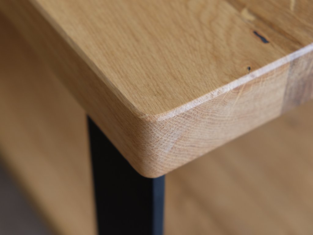 | Vyobrazený proddfukt: | Dub sukovitý 115x65 cm, hladký povrch, hedvábný olej polomatný (předposlední 2 foto matný olej, poslední foto černé mořidlo) |