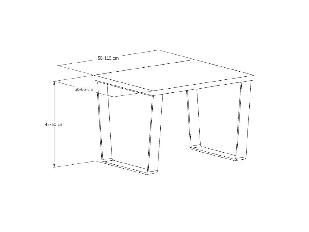 Kovová podnož je tvořena čtyřma nohama z ohýbané ocelové pásoviny 60x8mm (u nejmenší varianty je použit profil 40x8mm). K dřevěné desce jsou nohy přišroubovány pomocí vrutů, stolek je dodáván rozložený s předvrtanými otvory a s přiloženými vruty. Kovové nohy jsou lakovány práškovým lakem tzv. komaxitovou úpravou v průmyslové lakovně.