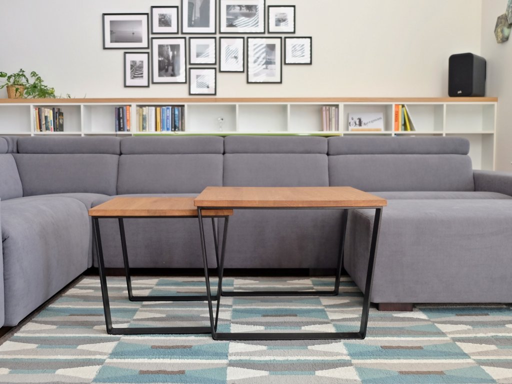 Konferenční stolky Skřivan vyrábíme se čtvercovou nebo obdélníkovou deskou ve výšce 45 a 50 cm.