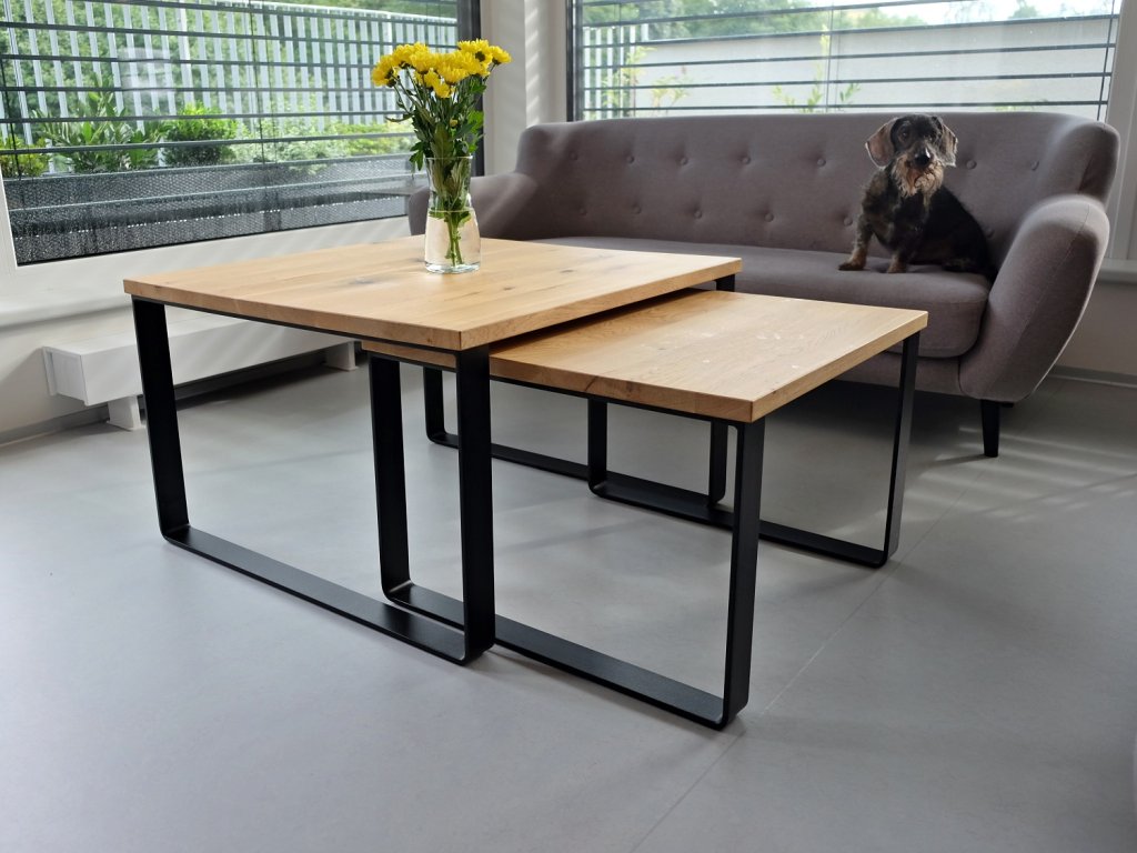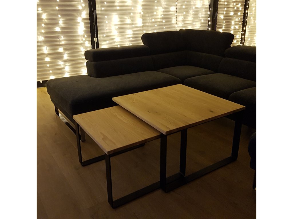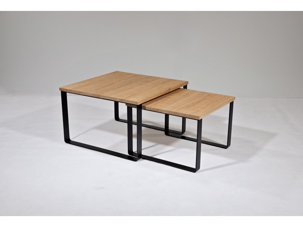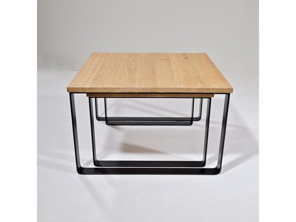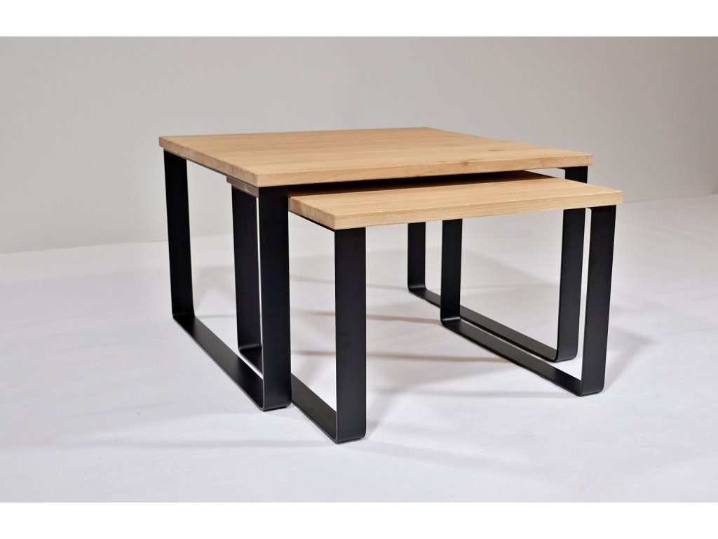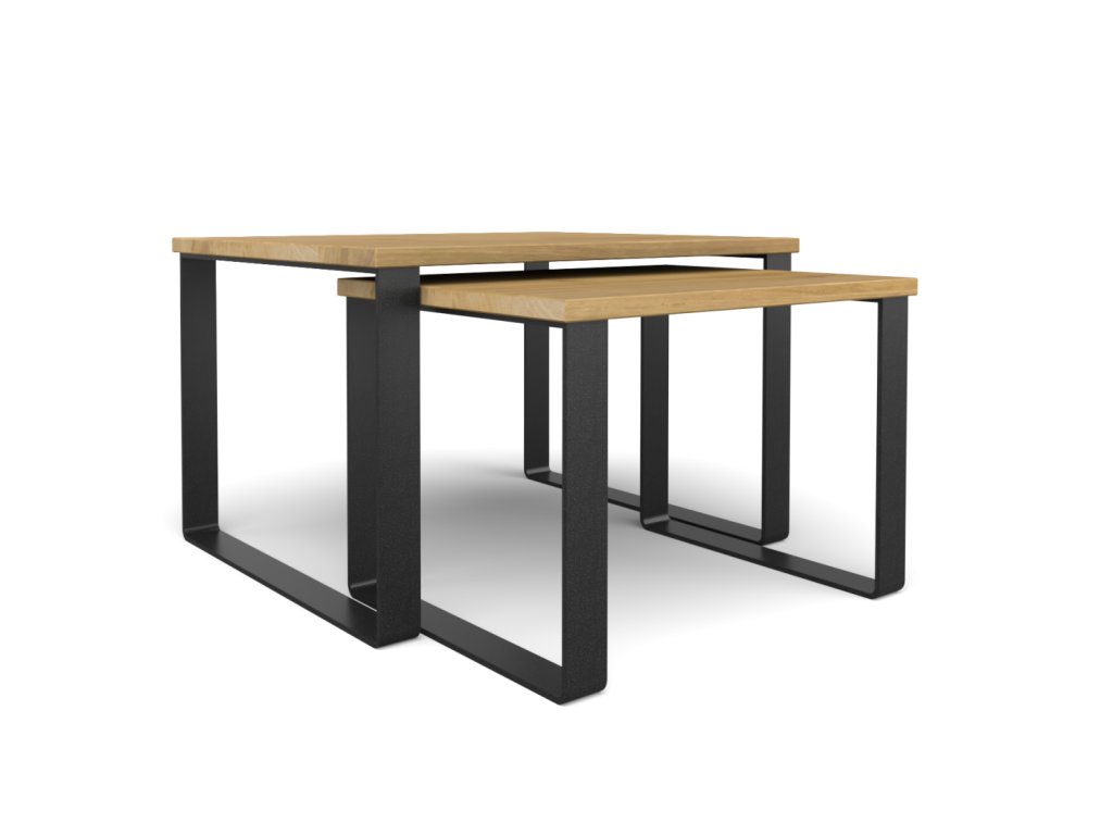 Dva stolky, nespočet využití. Můžete je postavit samostatně, vedle sebe nebo je zasunout jeden do druhého. Tak či tak vás potěší minimalistické pravoúhlé linie, výběrové dřevo a bytelná ohýbaná ocel.