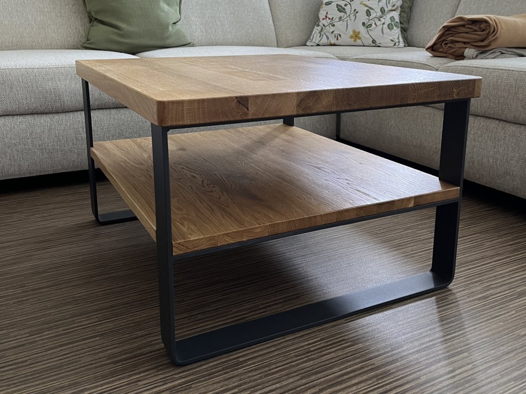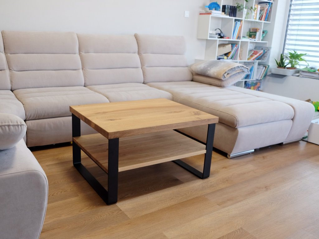 Konferenční stolek Sýček vyrábíme se čtvercovou nebo obdélníkovou deskou ve výšce 45 nebo 50 cm. Pokud vám doma poletují malé děti, oceníte možnost zaoblených rohů.