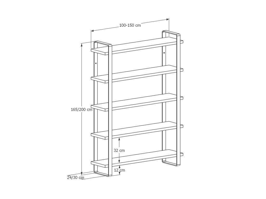 Hloubka regálu je volitelná 24 nebo 30 cm, výška je v případě 5-ti polic 165 cm, u 6-ti polic je pak výška 200 cm. Šířka regálu je volitelná v rozmezí 100-150cm. Samozřejmostí je případná úprava všech rozměrů na míru Vašeho domova!