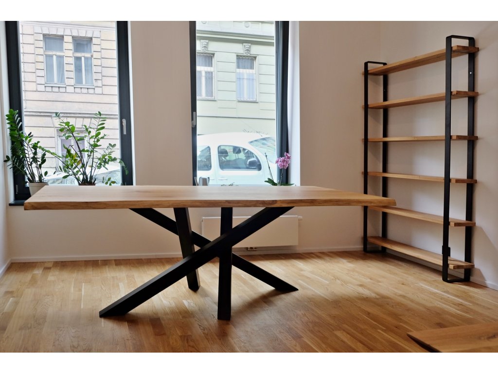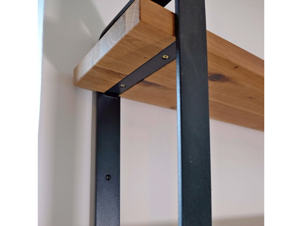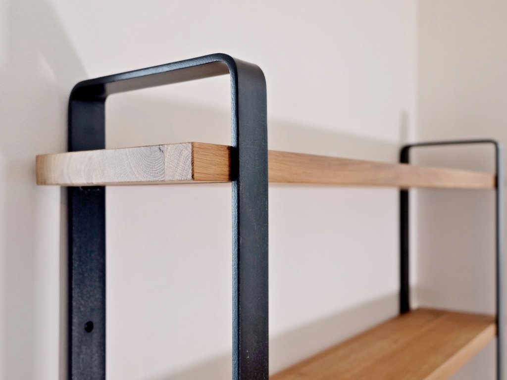 Pevná kovová konstrukce je vyrobena z ohýbané ocelové pásoviny. Ta dodá regálu jemnost a ladné křivky, které jsou tak oblíbené u našich stolů s podobnou konstrukcí z ohýbané pásoviny (Brhlík, Lelek, Raroh, Sýček)