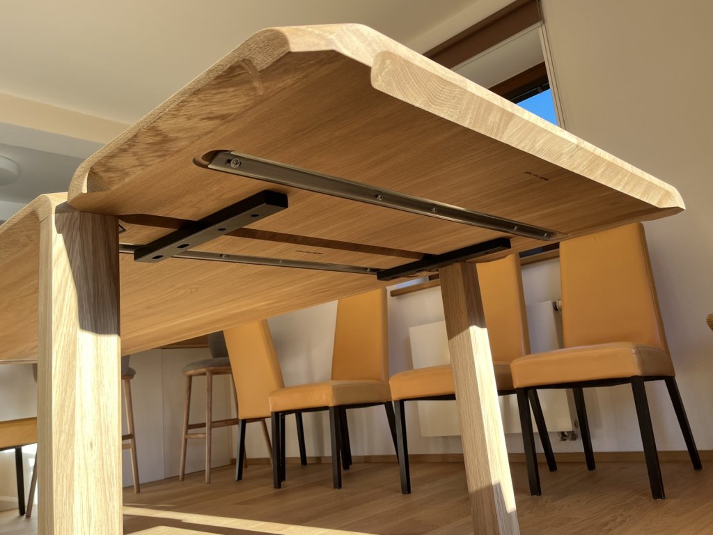 Uvedená cena je za 1 ks desky včetně kování, šroubů, klíče a přípravy kotvení na objednaném jídelním stole. Pro zvětšení stolu po obou stranách objednejte 2 ks.