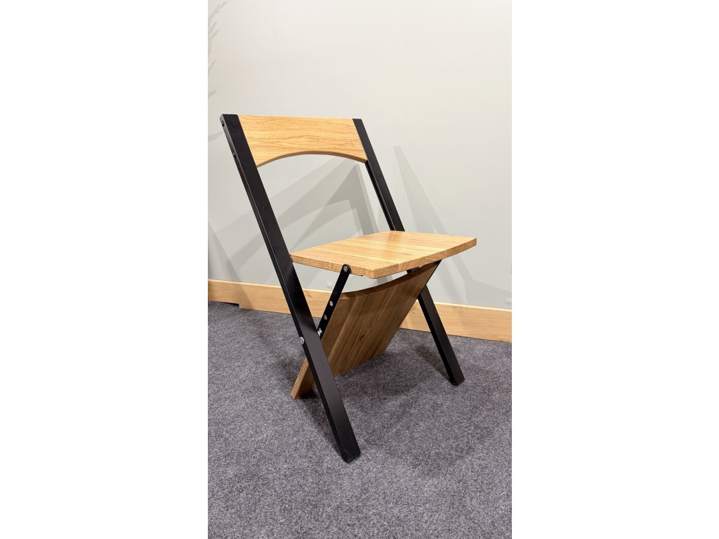 I skládací židle může být krásná a pohodlná. Tui minimalisticky kombinuje kovový rám s dubovými deskami, které vytvářejí hru linií – vzájemně se kopírují a zrcadlově promítají po celé ploše.