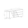 Levou část třípatrové komody tvoří uzavíratelné poličky. Tu ve spodním patře rozděluje praktická přepážka. V pravé části najdete tři šuplíky různých velikostí, do kterých pohodlně uspořádáte drobnosti.