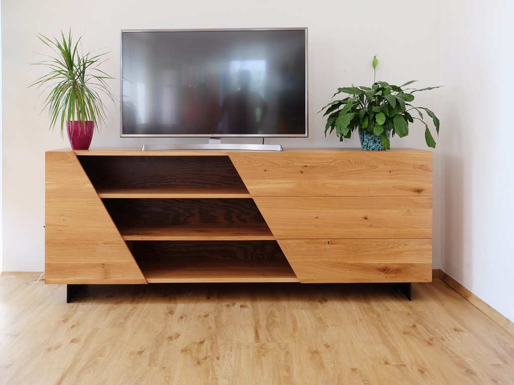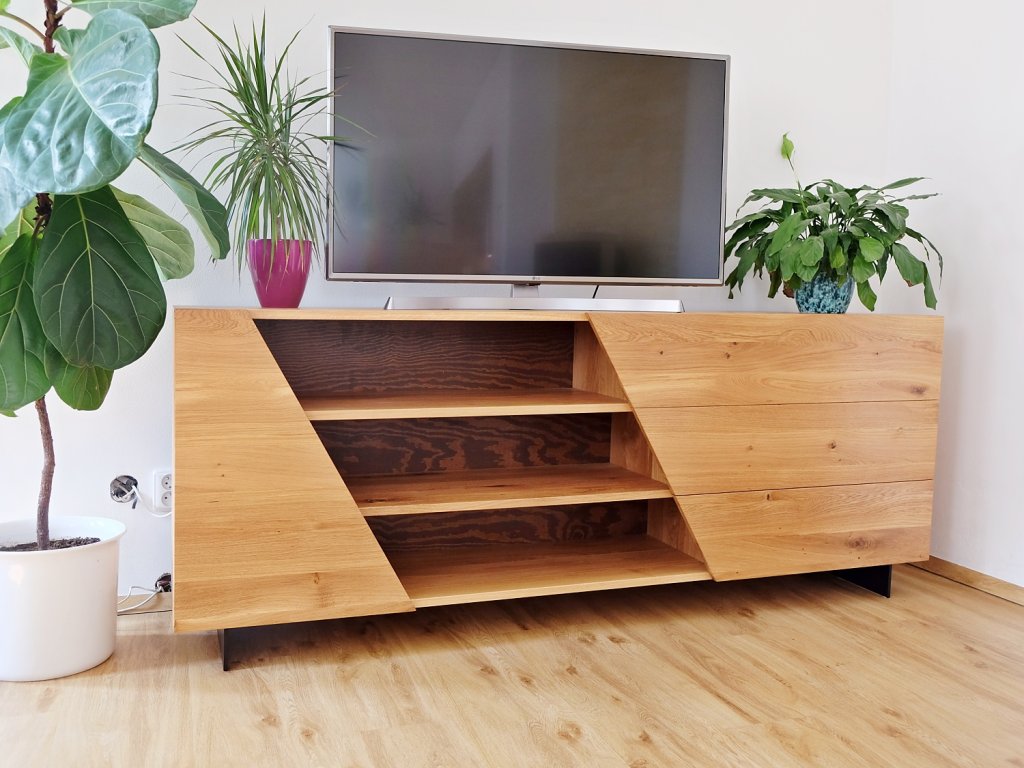 Skorce můžete využít jako televizní stolek i moderní komodu. Vyrábíme ho i v nástěnné verzi se dvěma patry.
